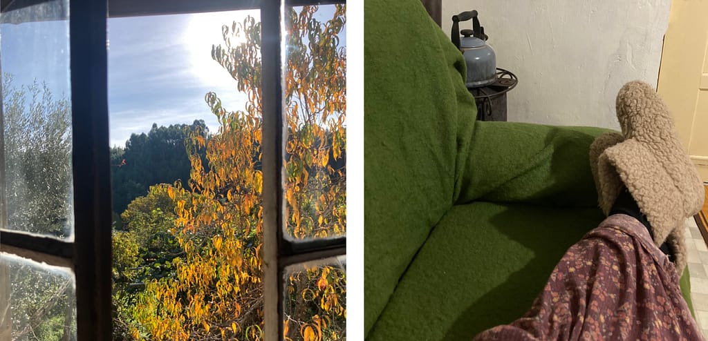 Het wonen in een huis in plaats van in een tent is best wel weer even wennen. Waar we in de tent veel geluiden hadden van wapperende zeilen, dieren in de buurt, wind, regen, is het in het huis stil. Muisstil. Wanneer het regent, merken we het pas als we naar buiten kijken of nietsvermoedend een stap buiten zetten en het is heel gemakkelijk om weer veel binnen te zitten terwijl het buiten zijn juist zo fijn was van het tentleven. Daarentegen is het heerlijk dat we niet meer op de tocht hoeven te zitten en binnen kunnen blijven als we naar de wc moeten! De gaspitten kunnen zachter tijdens het koken, omdat ze niet meer uitwaaien en het eten aan een grotere, minder wankele tafel is heerlijk. En we hebben een bank, dus kunnen af en toe weer eens lekker bankhangen, gewoon omdat het kan. Aan ons de taak om de fijne dingen (het buitenleven etc.) er in te houden en de voordelen/luxe van een huis enorm te koesteren. Met een beetje zoeken gaan we daar zeker onze weg in vinden!